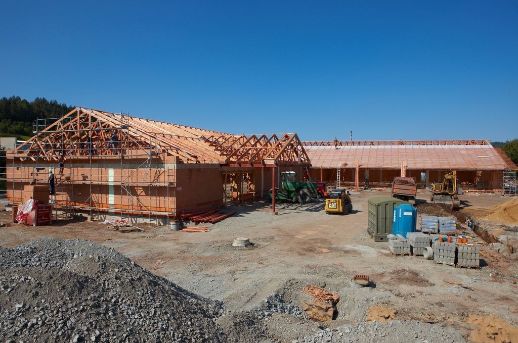 Obchodní centrum PENNY Market + KIK v Letovicích navazuje na dlouhý seznam objektů tohoto typu, na kterých firma KASPER CZ s.r.o. realizovala střešní konstrukci. Dlouholeté zkušenosti s velkorozponovými konstrukcemi, kvalita návrhu, výroby a montáže spolu s krátkými dodacími lhůtami zajistily společnosti významnou pozici mezi výrobci dřevěných konstrukcí se styčníkovou deskou na trhu ČR, která byla několikrát potvrzena nezávislými odborníky a dodavatelskými firmami. Udržení kvality díla ve všech směrech je pro firmu KASPER CZ s.r.o. prioritní záležitostí! Objekt zastřešuje cca 2200 m2 půdorysné plochy. Vazníky mají základní světlý rozpon mezi podporami 21,1 m a sklon 210. Prostor před výlohou je zakryt vykonzolovaným vazníkem o šířce 2,6 m. Konstrukce je navržena na bezpečný přenos veškerého zatížení od krytiny, podhledu, revizních lávek a zařízení TZB.