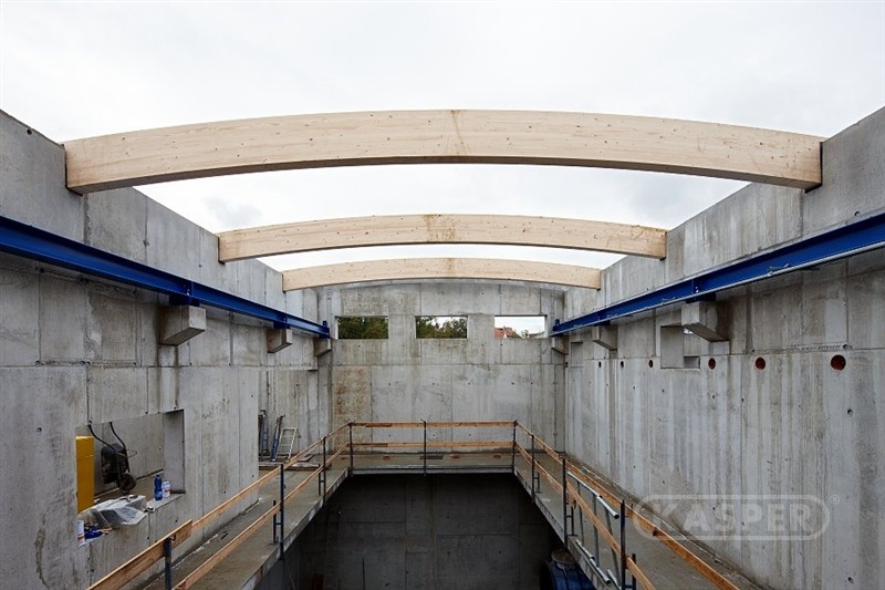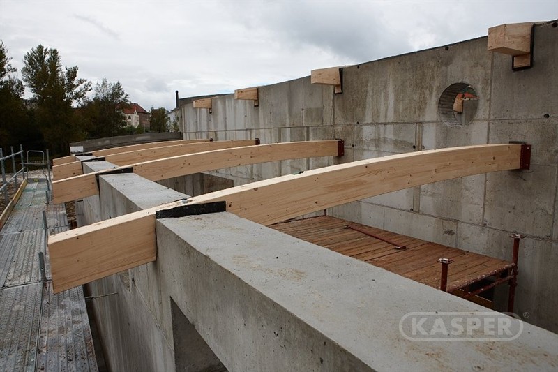 Firma KASPER CZ s.r.o. v priebehu 3. Q 2010 staticky navrhla a namontovala drevenú lepenú oblúkovú konštrukciu na novopostavenej malej vodnej elektrárni v Beroune. Drevené masívne prvky boli zhotovené u našho strategického partnera na výrobu lepených lamelových konštrukcií firmy Wiehag Gmbh. (www.wiehag.com).